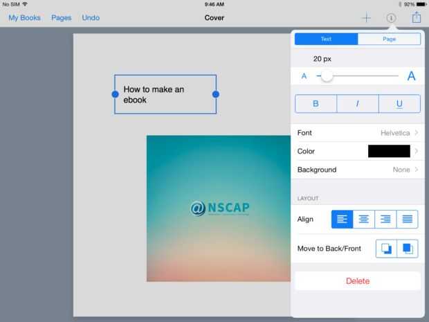 En el iPad resalte el contenido que desea editar en la página, clic en la "i" icono en la esquina superior derecha de la página. Dependiendo del tipo de contenido que ha resaltado usted verá opciones para cambiar el color, tamaño de texto, anchura de pluma, etc....