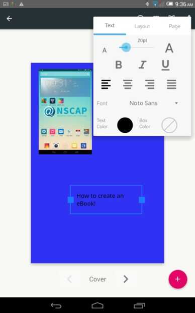 En Android resaltar el contenido que desea editar en la página, clic en la "i" icono en la esquina superior derecha de la página. Dependiendo del tipo de contenido que ha resaltado usted verá opciones para cambiar el color, tamaño de texto, anchura de pluma, etc....
