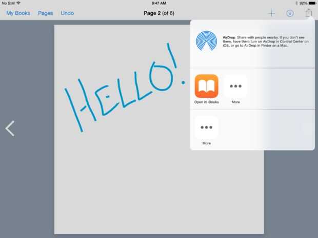 En el iPad haga clic en la pequeña caja con la flecha que sale de la parte superior. Esto te ofrece varias opciones de exportación, es el más popularmente utilizado eBook.