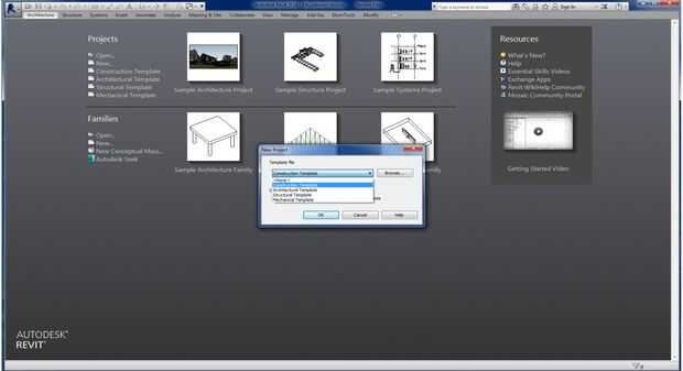 1) Seleccione "Nuevo" en las opciones del lado izquierdo de la pantalla. 2) Seleccione la plantilla de "Construcción". 3) haga clic en "Aceptar"