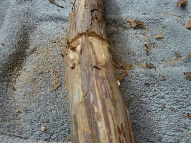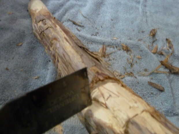 Fregadero de otra parada dos cortes en la madera para definir la nariz. Para mi hombre, va a tener un estrecho puente de la nariz hasta las cejas (la parte superior de sus zócalos del ojo) y un schnozz bastante amplia. Hacer un corte a cada lado de la nariz triangular. Si usted necesita marcar la madera con un lápiz para ayudarte mejor imaginarlo y para hacer cortes mejor, hágalo. Usted puede siempre borrar más adelante. Usted querrá hacer estas reducciones más profundas de lo que piensa. Tienes un palillo entero para trabajar con! Peor de los casos, puede tirarla y conseguir otro palillo, o cortarlo y empezar más abajo en el palo original.