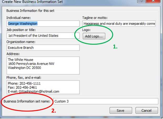 7. en el cuadro de "Negocio información definir nombre " (2.2) , escriba el nombre a guardar la información bajo. Haga clic en "Guardar" (el cuadro se cerrará). En la parte inferior derecha, haga clic en "crear ."