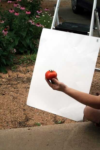 Me bastante mucho lo contrario como lo que hice en mi Instructable para crear un fondo perfectamente negro.  Coloqué un trozo de cartulina blanca en luz del sol completo, dura por lo que es uniformemente brillante que significó dirigiéndola hacia el sol contra una escalera.  A cabo (o tenían mi control significativo-otros/boca-abajo-cerveza-glass) el tomate a la sombra.  La sombra es agradable y suave, pero todavía bastante brillante.  Sin embargo, la cartulina se ilumina absolutamente en comparación.  El objetivo es conseguir el fondo uniformemente más brillante que el sujeto.  Fácilmente puede ser más creativo con iluminación y producir algunas fotos mejor, pero esto es muy fácil de hacer y requiere solamente una fuente de luz - el sol.