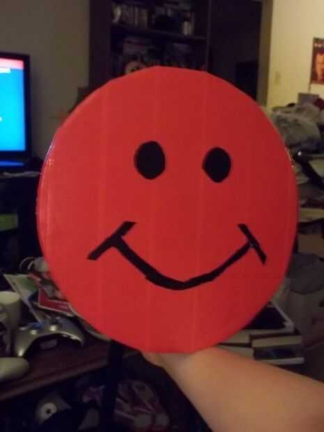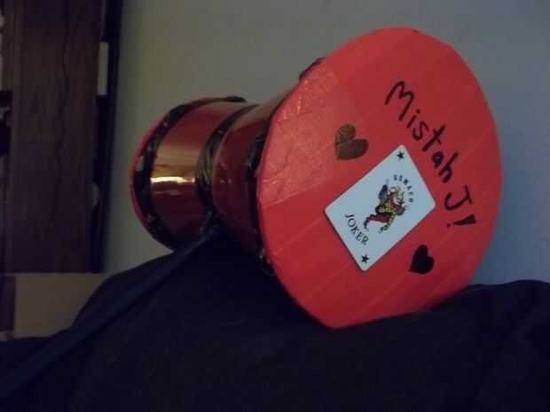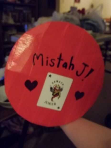 Acabo de alado, mirando trajes de otras personas en línea y fue por una gran cara feliz en un lado y una declaración de amor para mi puddin' con marcador permanente y la tarjeta de joker en el otro extremo.