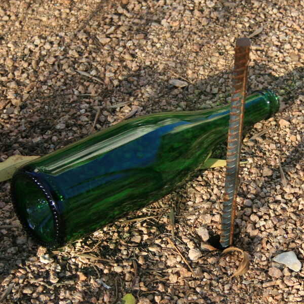 Jardinería punta 13: crear una guía de manguera con barras y botellas de vino