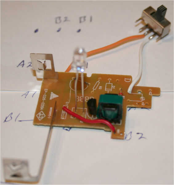 La tercera foto muestra el link (cable rojo) y conmutador y las conexiones del LED en la parte superior del circuito.