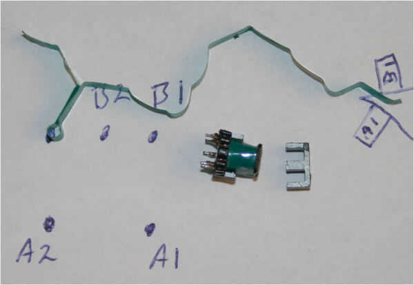 Mirando la segunda foto colocar y soldar un enlace de cable desde el punto 1 al punto 2 (yo generalmente pongo esto en la parte superior de la Junta) y otro link de alambre del punto 3 al punto 4 como se muestra.