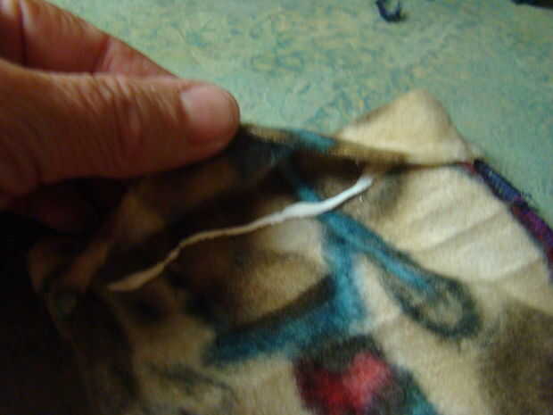 Plegar uno extremo de 1 pulgada, y ya sea coser, o pegar en su lugar. Cerca de 3 pulgadas desde el extremo doblado, atar el sombrero con cinta, cuerda, una goma o lo que tengas cerca. También puede hacer sombreros usar hilo y punto o ganchillo o usando redondo telar.