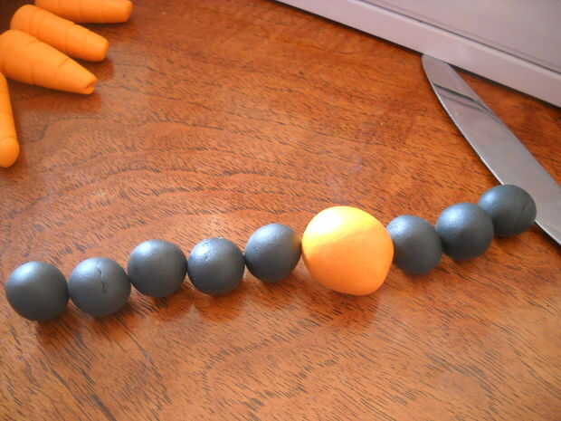 Ojos: cuando yo era un niño utiliza carbón para los ojos de muñeco de nieve, boca y botones.  Tomar algunas Sculpty negro y bolas de hecho 1/2 pulgada negro (estos no tienen que ser perfectamente liso ni nada, porque representan carbón).  Hacer 2 para los ojos, su muñeco de nieve será demasiado pequeña para una boca.