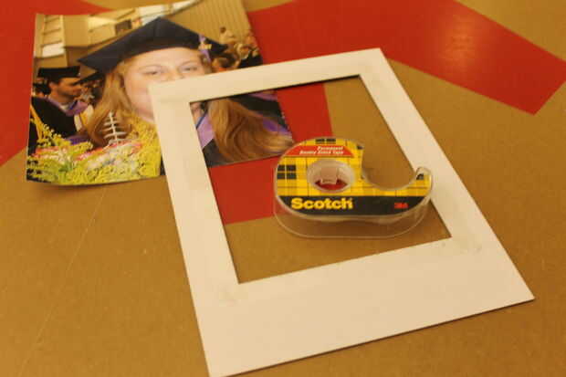 Coloque la cinta de doble cara en la parte posterior del tablero mate que rodea la plaza interior más pequeño.