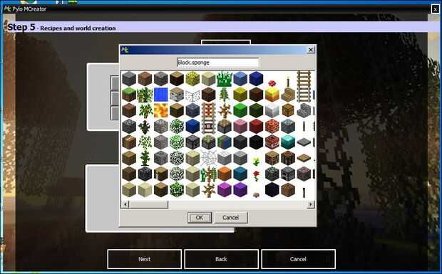 Haga clic en el lugar en la 'Plaza' fabricación donde el material se vaya a las naves o fundir el bloque y se le presentará un cuadro de diálogo que le da una variedad de bloques para poner aquí. Elegí la esponja, o en java,