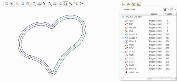 Crear un barrido sólido y sumar puntos como en la imagen, espejo para crear un hilo en forma de corazón.