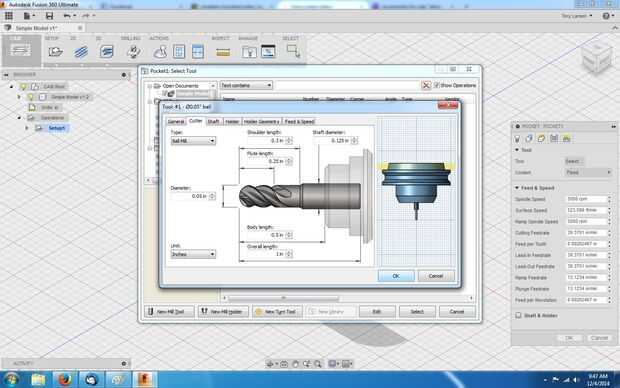3. ahora se introduce en las especificaciones de su nuevo molino de extremo, tamaño, diámetro, eje, flautas, etcétera, etcétera...