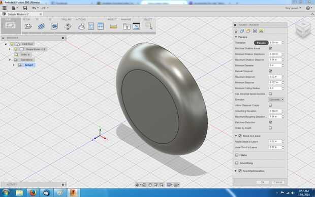 5. Pulse OK una vez que se establecen las especificaciones técnicas. Ahora 360 fusión generará sus trayectorias de herramienta.