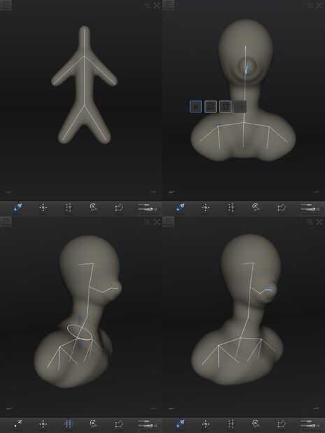 Tire los apéndices laterales hacia abajo y utilizar la herramienta de crear para añadir unos cuantos más huesos para rellenar el área del pecho.
