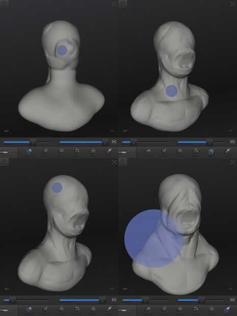 Principalmente usé la herramienta Grab y esculpir un cepillo en esta etapa.