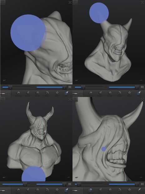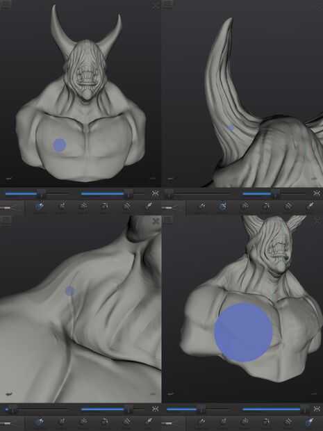 Para los cuernos utilice la herramienta del gancho agarrador y esculpir hacia fuera para crear la forma. Tire hacia fuera de los polígonos de la cabeza pero teniendo cuidado de no estira y arrugue el modelo.