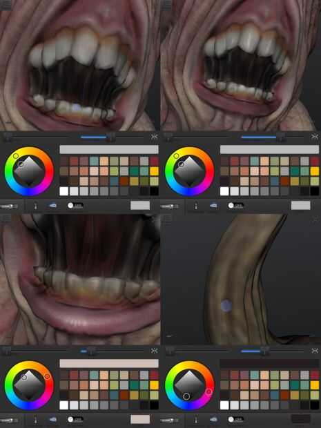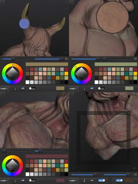 Siguiente carga una imagen alfa (una imagen con un fondo para crear la apariencia de transparencia parcial o total) de una textura de la piel para añadir profundidad a la pintura. Interruptor distinguida en hacer la textura alfa de color.