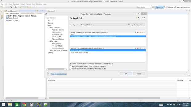 OK ahora viene la parte difícil. Vamos a empezar a vincular en todo lo necesario para las bibliotecas TivaWare.