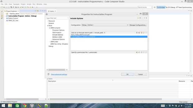 Desde aquí vaya a la sección brazo de compilador y haga clic en las opciones incluir.