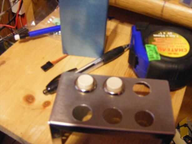 Introducir los interruptores en los agujeros. Asegúrese de que averiguar donde desea que el botón de bloqueo. En este punto, las cifras son arbitrarias. Decidí colgar la caja vertical, así que mi botón de bloqueo fue en la parte inferior izquierda, pero está totalmente hasta usted. Una vez que decidí la orientación, también puse un agujero extra para el conducirá al otro lado de la puerta.