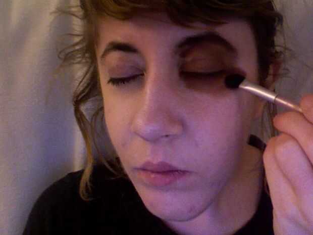 1. en primer lugar vas a cebar y Fundación se aplica a la cara.2. luego va a ojos que vas a aplicar una púrpura el la tapa y el pliegue del ojo asegurándose de que se mezcla hacia fuera y no dejó líneas duras.3. entonces va con un negro que se va a a