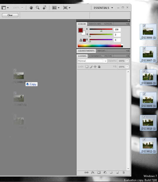 Abra photoshop y arrastrar tus fotos deseadas en la ventana de photoshop, se abrirá todas las fotos necesarias.