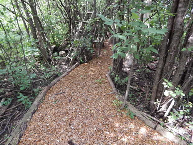Esta parte tomó más tiempo. Tuvo 47 cargas de rocas que se movió desde el patio en la parte posterior. Tuvimos esta área "verdes" en el patio que fue estéril sentimiento con plantas no hablar de. Las rocas también hicieron poco para añadir al suelo porque no romper. Se decidió deshacerse de ellos y en vez de simplemente tirar hacia fuera, así que decidimos reutilizar en el bosque.