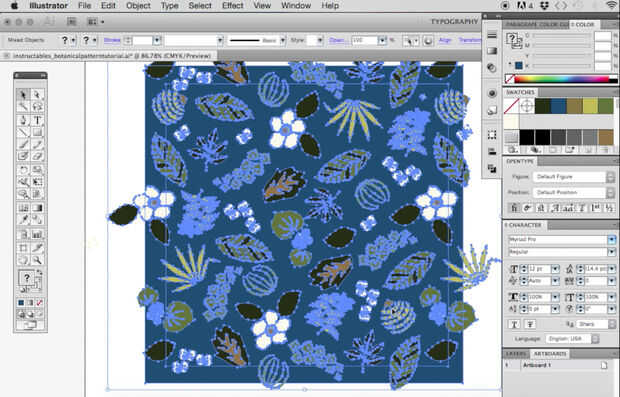 Una vez que su caja ha sido enviado a la parte posterior, puede seleccionar todos los artículos en su mesa de trabajo (el delimitador cuadrado, cuadrado de fondo e ilustraciones)