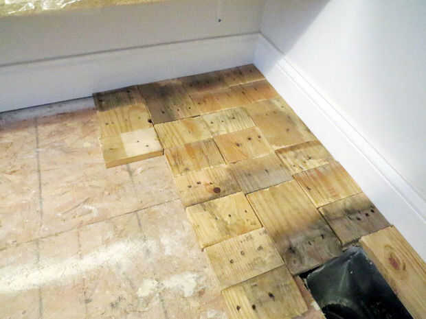 Nuestra planta de despensa fue un desastre. O, el pequeño cuarto miedo sin propósito que hemos convertidos en una despensa tenía este horrible alfombra barata en él. Apenas hasta la tarea. Parar por un reciclador de plataforma para otro proyecto, descubrí estas piezas de corte del bloque. Lentamente con el tiempo había acumulado suficiente para todo el piso.