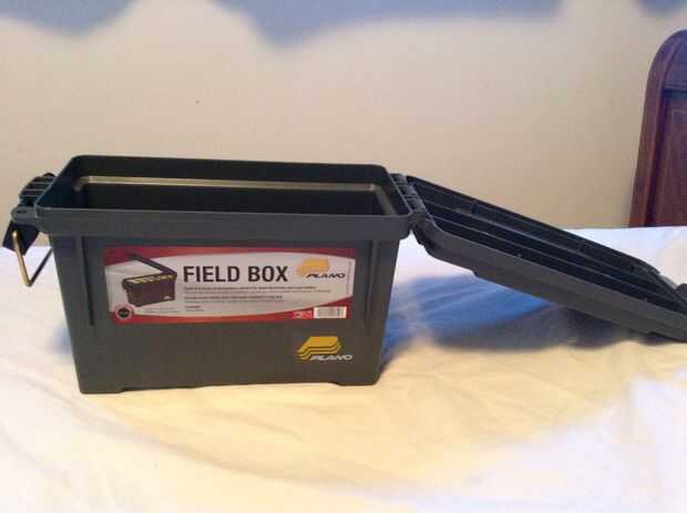He elegido una caja de munición apretado del agua debido a su versatilidad, robustez y el concepto que espero que mi idea va a crear. Ir a su local de Walmart o Target y buscar estas cajas en la sección de pesca. Deben ser no más de $15. Elegir una caja adecuada a sus necesidades.