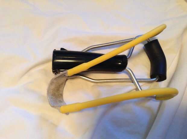 Materiales de caza pueden ser tan complejos como armas y trampas, pero para este proyecto, será un tiro de Honda de simple $5 para el truco. Elegir un tiro de Honda porque no es difícil encontrar piedras para utilizar como munición. También tengo un carrete de 200 yarda de la línea de pesca 50 libras con una caja con anzuelos, Señuelos y bobers. Con un palo, yo podía crear una marca barra de desplazamiento.