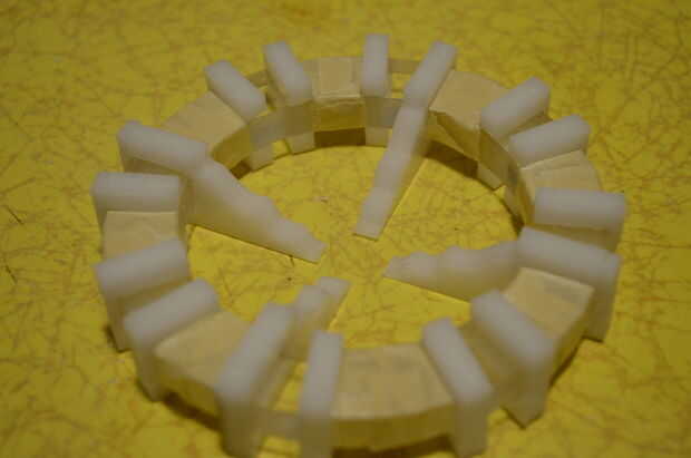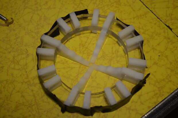Luego he añadido las primeras 4 secciones U en espacio de 1/3 o menos de los apoyos para hacer un espacio donde pude envolver alambre.