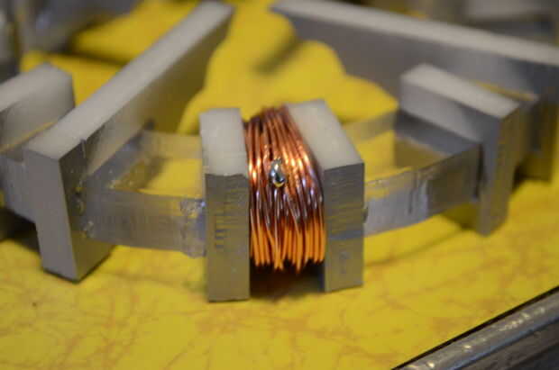 Una vez que tenga una sección envuelto, arena fuera el barniz (si su imán wire) y colocar un cordón de soldadura para mantener en su lugar.