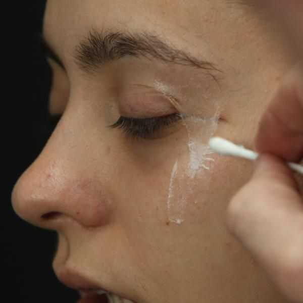 Luego hacer lo mismo para el labio y el ojo. Tenga cuidado cuando use pegamento alrededor de los ojos y labios. Siempre vale la pena hacer una pequeña prueba de parche para comprobar sensibilidad con adhesivos, especialmente como usted va subrayando la superficie de la piel tirando de ella.