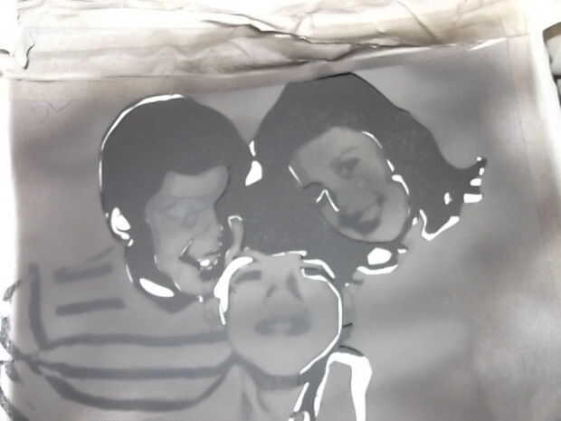 OK a un vacío número uno: para fijar la plantilla a la tela es rociar la parte posterior de la plantilla con el pegamento de contacto. Después de rociar el pegamento, le permiten ir hortera. Esto toma alrededor de dos minutos o menos dependiendo de la temperatura de su entorno local. No trate de colocar la plantilla en su superficie mientras el pegamento está aún húmedo. Al hacerlo, hará que la plantilla difícil de quitar y peor aún, dejar restos de pegamento.