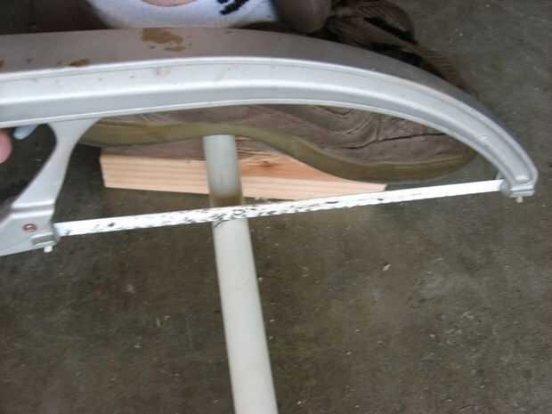 Inicia el hacking y corte el tubo de la longitud proporcionada. Usted tendrá que limpiar los bordes de los cortes (dentro y por fuera) cuando haya terminado. De lo contrario va soplar hacia fuera de virutas de PVC.