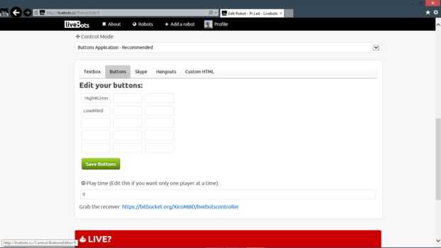 Paso 6: Poner la corriente Livebots y configurar el modo de control