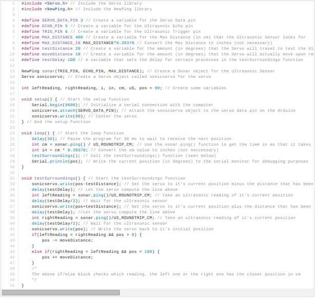Subir el código encuentra aquí a tu Arduino (todo es comentado, para que accidentalmente podría aprender algo!), si todo está conectado según el paso 2 (Observe que puede conectar los cables de jumper en la placa correspondiente a las conexiones de ultrasonidos), el servo debe empezar a buscar posterior y cuarto y avanzando hacia lo que es más cercano a él.