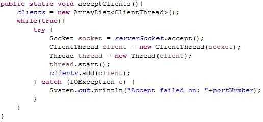 1. Con el zócalo recibido de serversocket.accept, crear un nuevo ClientThread.