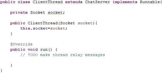 3. En ClientThread, hacer ClientThread extender ChatServer e implementar Runnable