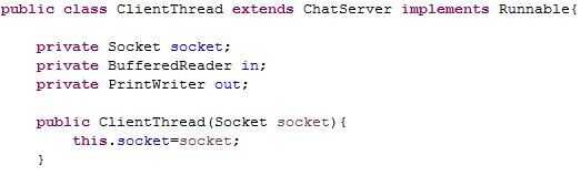 1. En ClientThread hacen un BufferedReader privado en recibir datos de los clientes y un PrintWriter escribir al cliente.