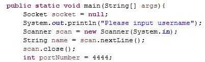 2. Inicializar el PrintWriter en funcionamiento con flujo de salida del zócalo, BufferedReader del servidor con un InputStreamReader nuevo utilizando la secuencia de entrada de la toma y BufferedReader del usuario con un nuevo InputStreamReader con System.In