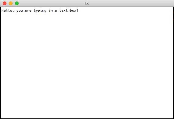 root=Tk("Text Editor") text=Text(root)