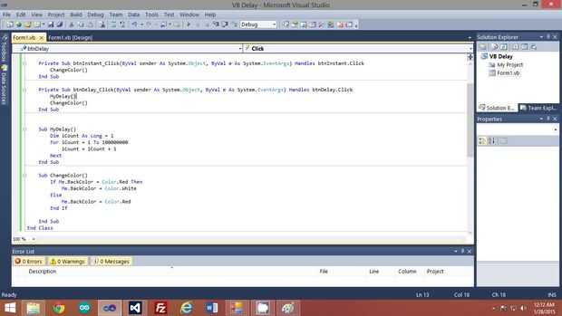 En este vídeo os muestro cómo crear una pequeña demora dentro de su programa de vb, esto puede ser útil al programar con micro controladores o a espacio cuando celebran sus funciones. Hay muchas aplicaciones para esto y esto puede ser muy útil a veces cuando necesite hacer una pausa en su programa durante una fracción de segundo, o incluso minutos. El programa se muestra en las imágenes y está disponible para su descarga.