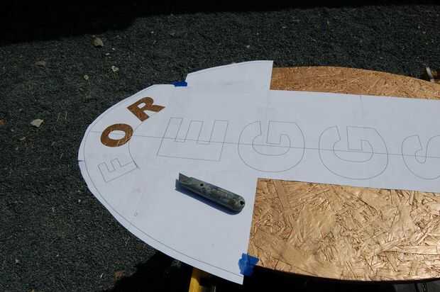 Corte a lo largo de las líneas. Dejar el medio de las letras que se adjunta y retire la parte que debe ser pintado. Como pelar hasta el papel que usted conseguirá la caída de la profundidad que necesita cortar. No ser super exigente con las líneas, como personas leerán esto desde la distancia mientras conduce 40 + MPH.
