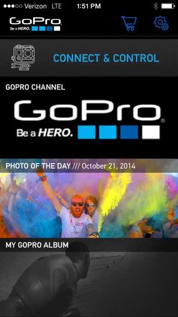 -Abrir la aplicación gopro y haga clic en el botón de "Conectar y Control".