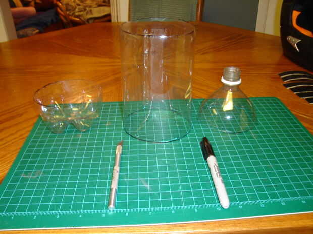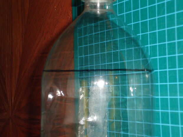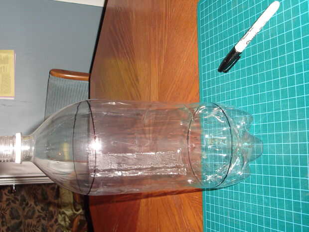 Esto es solo el general cómo alto va a ser, se debe cortar justo después de la botella comienza a la curva en la parte superior y en la parte inferior justo antes de la marca (base), secciones cosa comienza con un rotulador en primer lugar, luego corta hacia fuera, tijeras o el trabajo de cuchillo Exacto bien.