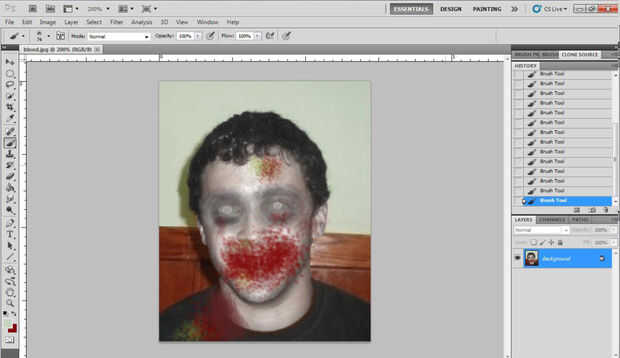Cambiar tamaños de pincel y la opacidad se suma a un efecto sangriento.