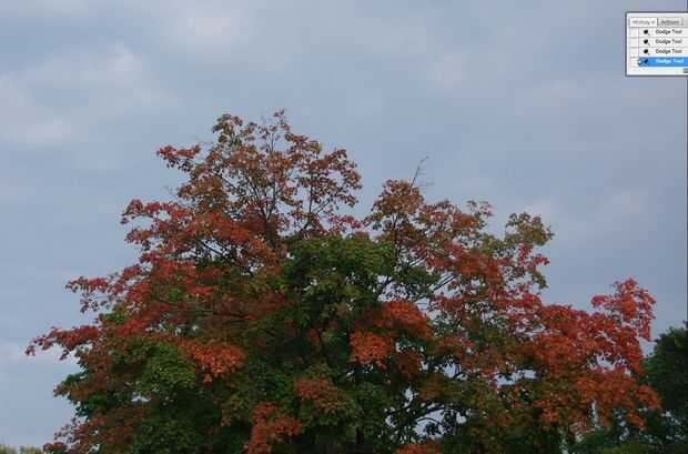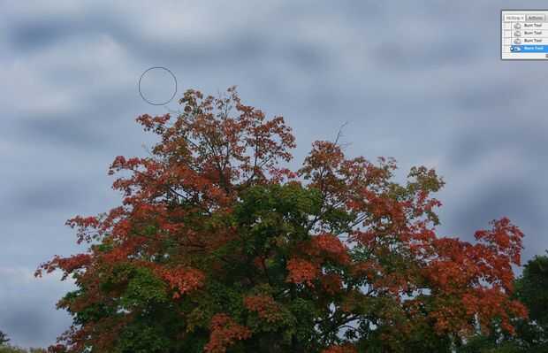 Así que primero oscureció hasta las partes más oscuras del cielo usando la herramienta y aligerado hasta las partes más ligeras con la herramienta dodge.